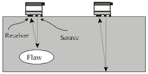 (source-激振源;receiver-接收器;Flaw-缺陷)