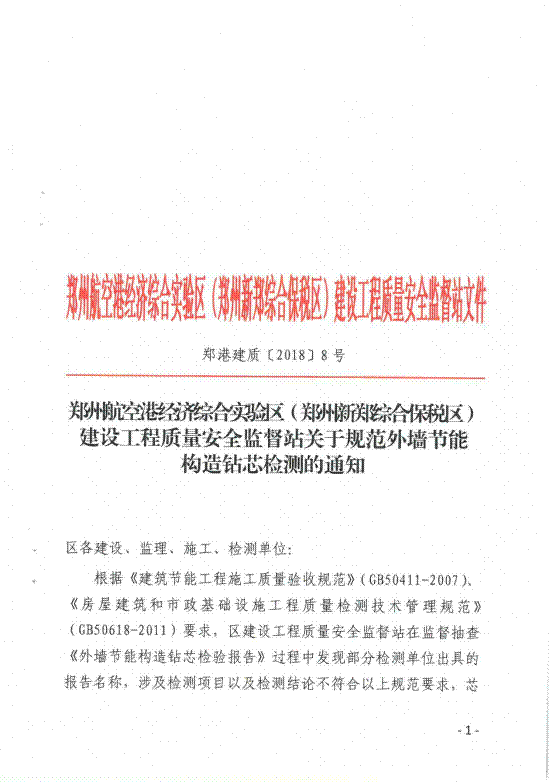 鄭州航空港經(jīng)濟綜合實驗區(qū)(鄭州新鄭綜合保稅區(qū))建設(shè)工程質(zhì)量安全監(jiān)督站關(guān)于規(guī)范外墻節(jié)能構(gòu)造鉆芯檢測的通知