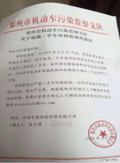 鄭州市機(jī)動(dòng)車污染監(jiān)察支隊(duì)發(fā)出通知,二手車限遷政策取消