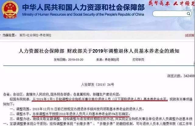 3月20日,人力資源社會保障部、財政部發(fā)布《關于2019年調(diào)整退休人員基本養(yǎng)老金的通知》,確定了: