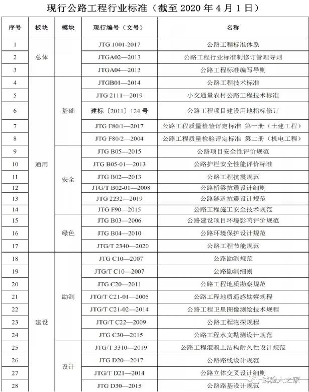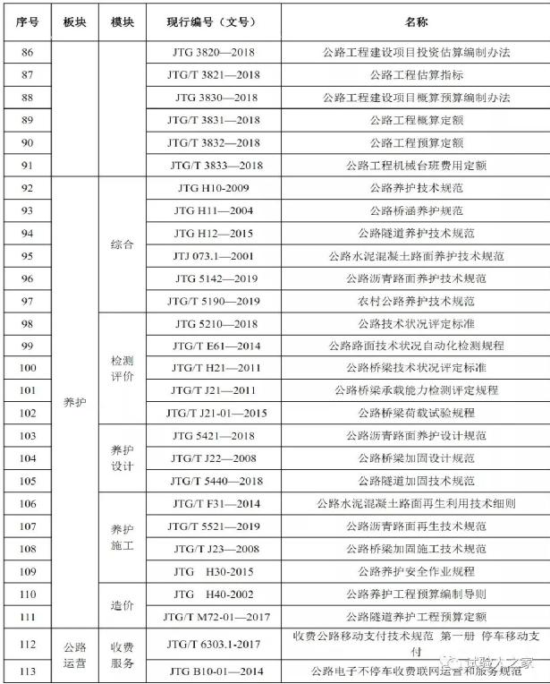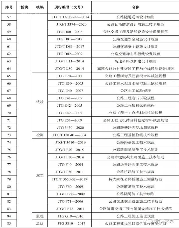 2020版公路工程標(biāo)準(zhǔn)規(guī)范目錄