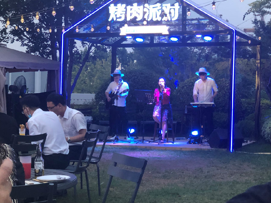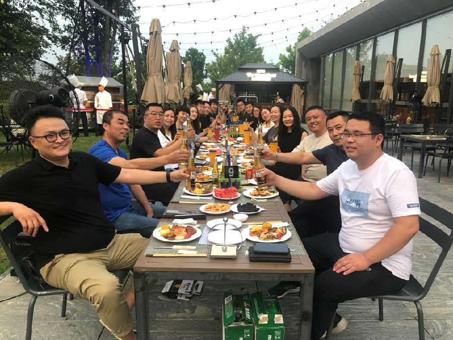 陳總講話結(jié)束后,團(tuán)建活動(dòng)的烤肉派對(duì)環(huán)節(jié)開始了,在熱情似火的盛夏七月,唯烤肉與美酒不可辜負(fù),在一天辛勤的工作后,伴隨著現(xiàn)場(chǎng)駐唱歌手愜意的歌聲享受一頓烤肉大餐,實(shí)屬人間一大快事,大家享受美食,分享快樂(lè),一天的疲憊都被拋之腦后。