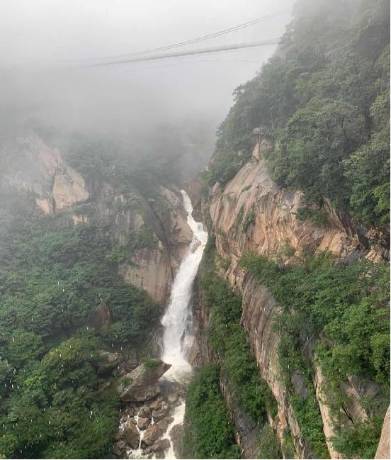 第一站到達(dá)的是九龍瀑布。幽靜的河灣、幽深的碧潭、險(xiǎn)絕的峽谷、奔瀉的瀑布構(gòu)成了壯麗的峽谷奇觀。從山上從山上拾級(jí)而下,只覺(jué)得白云山不是云最多,而是樹(shù),森林覆蓋率達(dá)98%,置身山外看不到巖石,只是全部的綠色。尋瀑的過(guò)程輕松愉快,不知疲倦,奈何不知美景尚在下游,前半段路程逗留太久,及到中游發(fā)現(xiàn)小瀑布開(kāi)始,便驚喜不斷。到了山底,坐上返山纜車道,再一次俯瞰漫山遍野的綠山。那綿綿青山,青峰千疊,莽莽蒼蒼,像一幅潑墨山水畫(huà)!這也使得我們更加體會(huì)到最美的風(fēng)景需要我們不斷地堅(jiān)持,不斷地攀登。在工作中亦是如此,只有不斷的堅(jiān)持和探索,才能提高我們的業(yè)務(wù)能力和專業(yè)知識(shí)。