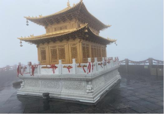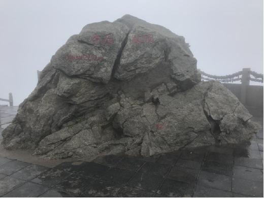 第三站到達(dá)的是玉皇頂。乘觀光車到達(dá)換乘點(diǎn)后,一行人乘纜車上山,后又花一個(gè)多小時(shí)爬上一千多米的高山,由于第一天太過(guò)疲憊,到達(dá)飛來(lái)石時(shí),一行人已經(jīng)氣力耗盡,但仍堅(jiān)持到底,利用最后的一絲力氣爬上了最后幾個(gè)臺(tái)階,終于登上了伏牛山三大主峰之一,海拔2216米的玉皇頂。于峰頂眺云海,蒸騰的云霧似海邊之云,有水汽洗濯,又似天外之云,無(wú)塵埃污染,猶如置身人間仙境。后大家一起焚香祈禱,拜見(jiàn)玉帝。后掛了全家福鎖,這次的白云山之行也到了尾聲。