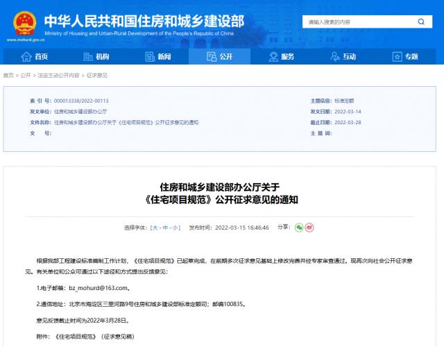 2019年9月10日,在對(duì)反饋意見(jiàn)和修改建議進(jìn)行認(rèn)真研究分析和處理后,住建部辦公廳曾第二次發(fā)布關(guān)于征求《住宅項(xiàng)目規(guī)范》等住房和城鄉(xiāng)建設(shè)領(lǐng)域全文強(qiáng)制性工程建設(shè)規(guī)范意見(jiàn)的函。