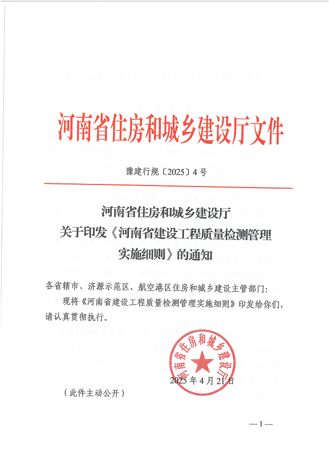 河南省住房和城鄉(xiāng)建設(shè)廳 關(guān)于印發(fā)《河南省建設(shè)工程質(zhì)量檢測管理實施細則》的通知